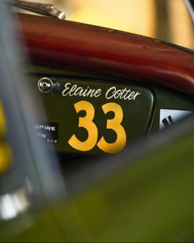 Elaine had two good luck charms when she raced - the number 33 and a Stinky Skunk air freshener. To honor her, Valentina Trentini has hand painted Elaine’s name and number “33” on the glovebox. We’ve also found a new, less stinky, Stinky Skunk air freshener to travel with.